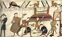 In the aftermath of 1066 King William built castles to help secure his hold on England. Initially these were Motte and Bailey castles. On his arrival in England he put up a motte and bailey wooden castle at Hastings. The motte held the keep or tower. The bailey was the yard at the bottom of the man-made hill. This early castle can be seen on The Bayeux Tapestry. The castle erected at Hastings was simply a wooden tower constructed atop a man-made hill. Built within weeks of Duke William's arrival on England's south coast, it was as if Duke William had packaged it all up and carried it over the channel with him, like a building kit. There are other early castles shown on The Bayeux Tapestry. These were also constructed from wood. I used the castle at Bayeux in the early chapters of The Swan-Daughter.